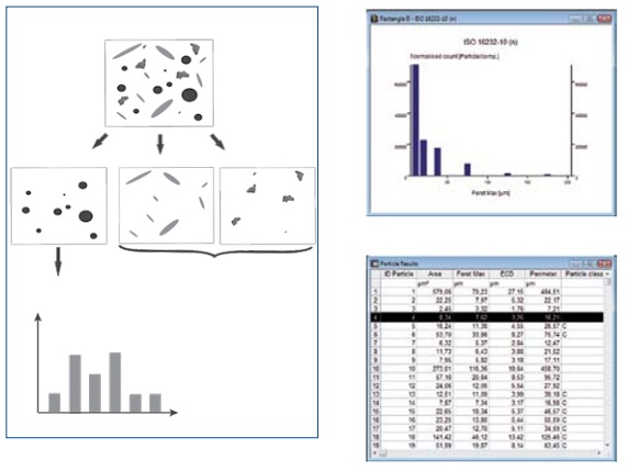 掃描整張濾紙表面,對(duì)所有顆粒進(jìn)行完整的精確探測(cè)、計(jì)數(shù)、分類(lèi)和測(cè)量,支持ISO 4406, ISO 4407, ISO 16232/VDA 19, NF E 48-65, SS 2687, DAF 2005,USP788等多種標(biāo)準(zhǔn);