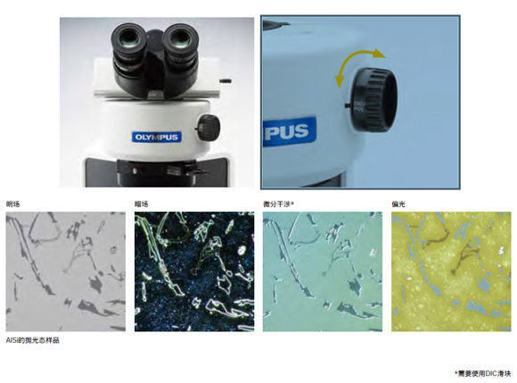 BX3M保留了常規(guī)顯微鏡檢查的傳統(tǒng)襯度對比法,比如明場、暗場、偏光和微分干涉。隨著